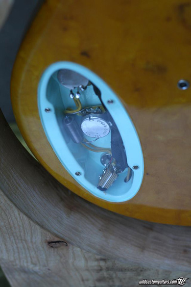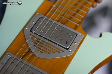 Pour finir, le set de micros Bare Knuckle Pickups "WARPIG 7" en metal brossé viens rappelé que chez Wild, nous faisons des guitares rock n'roll et mordantes! En jouant sur le Volume et le Tone, on obtiendra facilement assez de polyvalence pour s'aventurer sur tous les terrains de jeux d'une 7 cordes." Propos issus du site web de Wild Customs