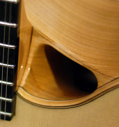 sans évent. La découpe de l'ouie sur la table aurait pu être plus sobre et plus fonctionnelle, surtout pour accéder à l'intérieur de l'instrument (prévu pour les prochains modèles).