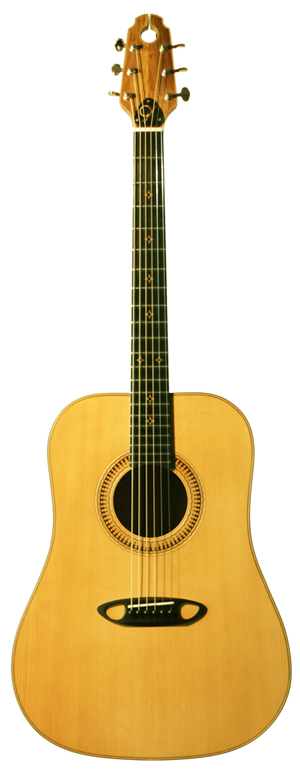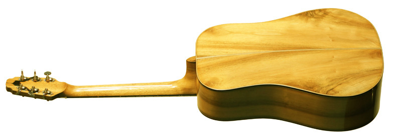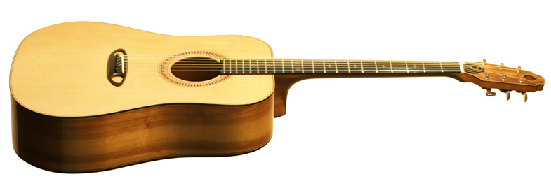 ici encore nous avons une table en épicéa du Jura et une forme D redessinée et bien plus généreuse qu'un format standard d'une D (dreadnought).