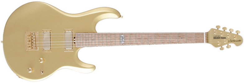 Au point de vue lutherie, la Music Man Silhouette Gold Roller se voit dotée d'un corps en acajou monté d'un manche et d'une touche 24 cases en érable.