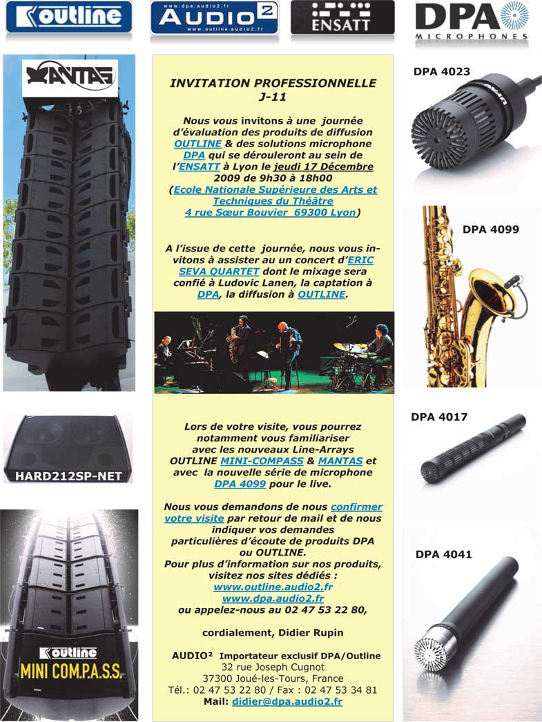Liens : - http://www.outline.audio2.fr/ - http://www.audio2.fr/ - http://www.ensatt.fr/ - Accès : http://www.ensatt.fr/P/acces.html
