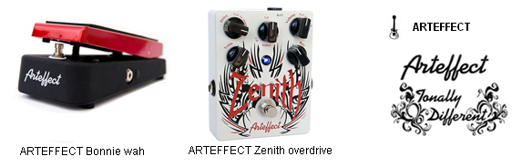 La gamme proposée actuellement par ARTEFFECT se compose d'un Overdrive tout terrain, la Zenith, et d'une pédale wah, la Bonnie,