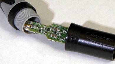 Le câblage du 4099 est en Micro Dot. De type coaxiale, il se branche sur une console ou un préampli via un adaptateur symétrique en xlr de chez neutrix avec, à l'interieur, un circuit made in DPA pour permettre la gestion de l'alimentation phantom, le passage de deux à trois points (symétrisé le signal) et la gestion du signal sonore
