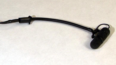 au col de cygne par deux bagues en caoutchouc faisant office de suspension et permettant au micro de ne pas être pertubé par les vibrations et mouvements engendrés par les gestes du guitariste.
