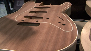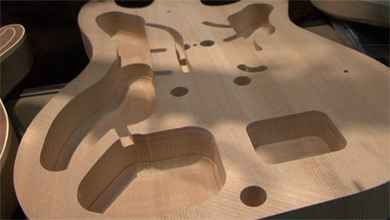 Le manche érable (visé) est d’un confort absolu dû en partie à l’ergocut , c’est à dire que la tranche du manche est légèrement biseautée de part et d’autre donnant un accés facilité à la touche en érable et une sensation de rondeur à la prise en main, très agréable (il existe aussi une version avec touche palissandre).