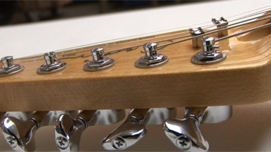 La tête est munie de mécaniques Gotoh bloque-corde. Elles sont très précises et très agréables à manier. Malheureusement il y a là un point un peu obscur puisque je ne suis pas parvenu à changer les cordes du premier coup. Mais heureusement, une petite documentation dédiée aux mécaniques m'a permis de mieux comprendre une fois pour toute comment fonctionne ce type de mécaniques.