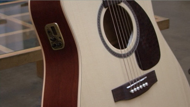 - Original : moyen de gamme avec deux modèles dreadnought en laminé merisier pour le dos et les éclisses et une table en cèdre.