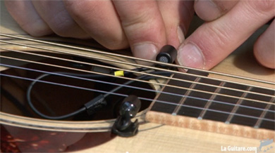 Notre guitare acoustique à cordes nylon se retrouve équipée de deux petits micros aériens placés en position graves et aigus au niveau