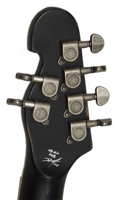 Le nom du modèle est inscrit fièrement sur la tête, comme si la guitare revendiquait son statut de « porte drapeau » de la marque.