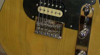 En la sortant de sa housse, on sait tout de suite à quoi on a affaire. Un corps de Telecaster et un accastillage sobre avec un chevalet fixe, c'est assurément une guitare de blues. En attardant un peu notre regard sur la belle on se rend compte que la Bluescaster a néanmoins quelques particularités notamment au niveau du choix des micros, Saint Blues ayant opté pour un double splittable en aigu ainsi qu'un simple en micro milieu et en position manche.