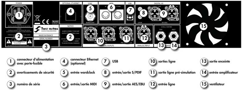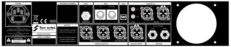 Notez que Two Notes a intégré une loadbox dans son appareil, ce qui permet de ne pas brancher son système d'amplification à un baffle externe.