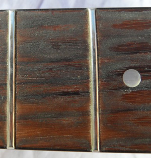 Lorsque le manche est libéré de toutes ses cordes, profitez en pour nettoyer la touche de votre manche ainsi que la gorge des frettes qui récupère toute la crasse sous forme de pellicule noire qui durcit avec le temps (voir photo ci-contre à gauche).