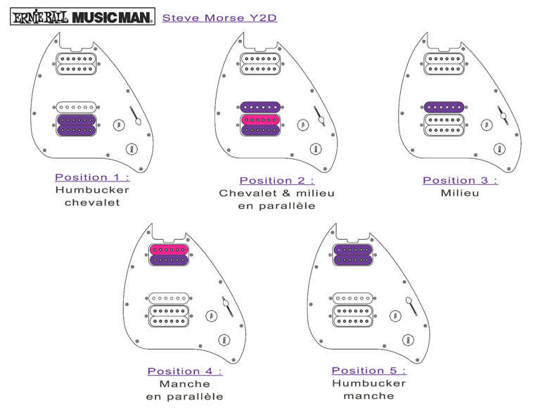 Steve Morse à une manière bien personnelle d’utiliser les différentes tonalités de ses micros : pendant les solo, il va alterner micro manche lorsqu’il joue les notes aiguës et micro chevalet lors des notes plus graves… Pour un guitariste et sa guitare atypique, il fallait donc des micros sur mesure!