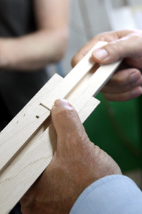 En lutherie artisanale, c'est la fixation au tenon queue d'aronde