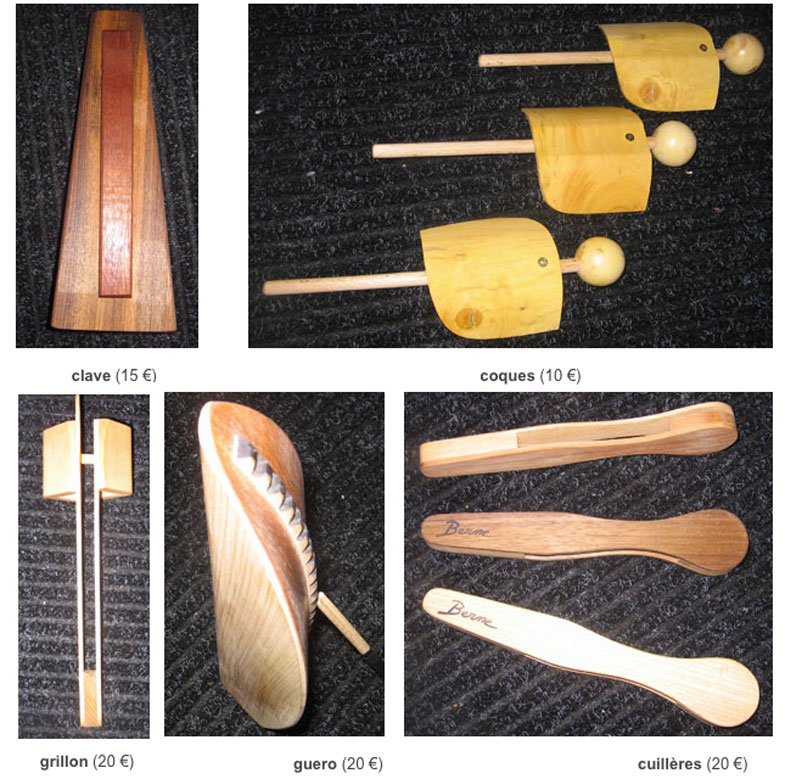 | Divers percussions: http://www.berneluthier.fr/instruments/percu_pack_fr.htm avec lien vidéo |