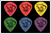 Le look : Les médiators en Delrin qu'ils soient noir, blanc ou de couleurs sont toujours ordinaires. Les Celluloid ont un look sympa et malheureusement je n'ai pas pu essayer et surtout voir leur modèle Glow qui éclaire dans le noir. Sur l'épaisseur du médiator, j'apprécie les inscriptions sauf sur certains modèles où il est juste mentionné : Médium, Heavy ou Extra-Heavy. Le logo est assez plaisant. La particularité est que vous pouvez customiser vos propres médiators.
