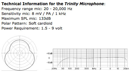 Le micro apporte le vrai son de l'instrument même s'il n'est pas optimum comme avec la configuration micros (Se4 et DPA) que vous pouvez entendre sur la première partie de la deuxième vidéo. Le micro du Trinity apporte le bas, trop imposant quand il est seul mais très équilibré quand on le mixe avec les piezos. Le piezo quant à lui apporte une finesse et une douceur qui masque le côté brut et accrocheur du micro.