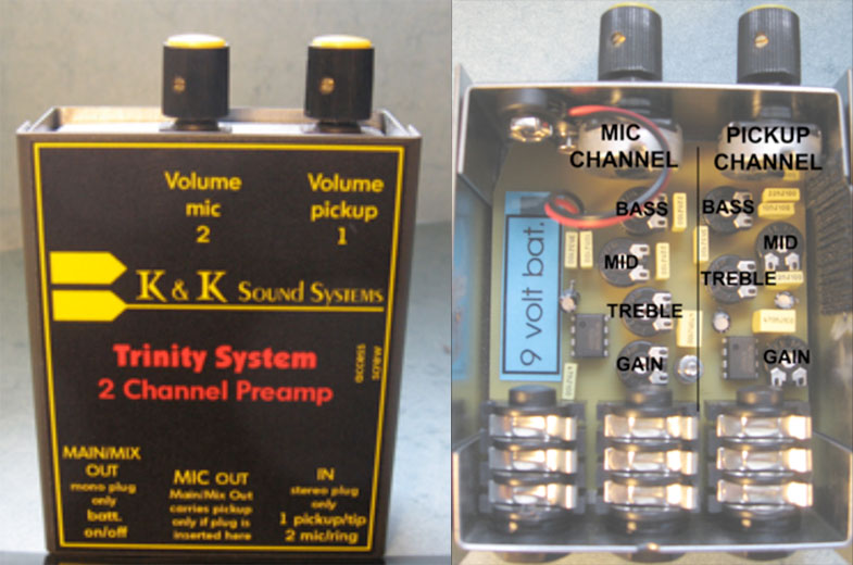 K&K propose le système sans préampli pour ceux qui souhaitent traiter le son de façon autonome. Cela nécessitera alors une pile et un jack stéréo.