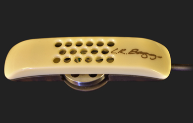 Annoncé comme révolutionnaire, ce type de micro à l'avantage de ne pas être placé comme un micro aérien dans la caisse de la guitare mais collé sous la table d'harmonie à 3mn au-dessus de la surface de celle-ci. L.R Baggs annonce qu'il peut être collé n'importe où sur la surface de table et deux questions me viennent alors à l'esprit :