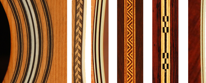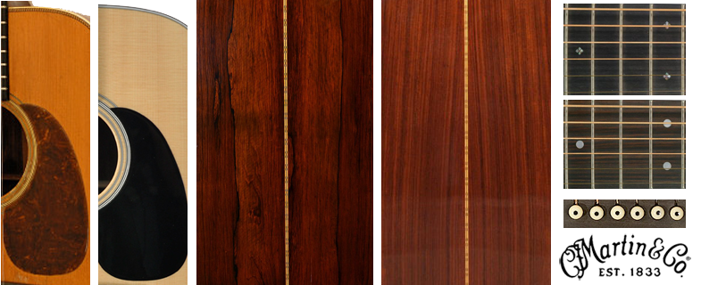 Le style D-28 que vous pouvez voir sur la photo ci-dessus, se caractérise par (de gauche à droite) :