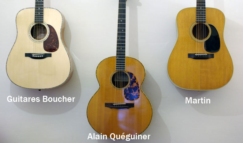 tester 3 guitares de très grandes qualités (une Martin, une Quéguiner