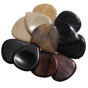 Pick en bois, os, cornme le Buffalo, dans le même genre que les Dugains (mais en moins cher et moins bien selon les utilisateurs)