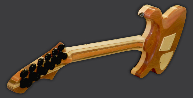 Le corps de la guitare « JANAA » est constitué de quatre essences de bois :