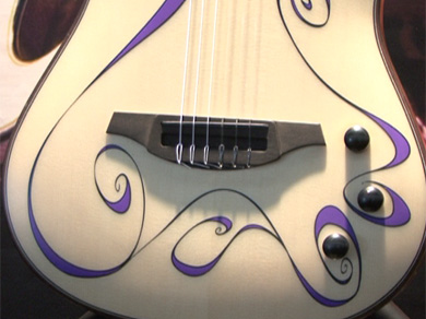 Présenté en exclusivité au musikmesse sur le stand Lag, le modèle signature Keziah Jones. Cette guitare est unique en son genre et a été conçue spécialement suivant les besoins de l'artiste : solid body à cordes nylon, corps et manche en acajou, table en épicéa, une électronique studio Lag avec un micro sous le chevalet. Les cinq preset du studio Lag ont été adpatés au son Blue funk si spécifique de Keziah Jones.
