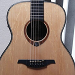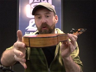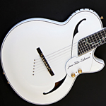 Taille soprano, manche en acajou, dos et éclisses en Koa avec deux particularités. La première est son épaisseur très fine et là me direz vous, déjà qu'un uke c'est petit, si on lui enlève de l'épaisseur, quelle en sera la projection ??!! Voilà donc la deuxième particularité : le dos. N'oubliez pas que Michel est luthier et que pour compenser cela, il a donné à ce uke un dos bombé. Et ça fonctionne.