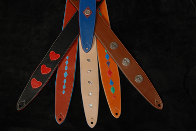 Nous avons également de sublimes ceintures à assortir à vos sangles, des pièces cache-boucle pour protéger le vernis du dos de votre guitare, divers étuis à porter à la ceinture pour bottle-neck ou harmonica.