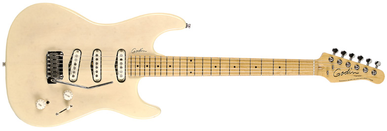 Le corps en érable argenté pour le bloc central et les ailes en peuplier, est inspiré par celui de la "Strat" mais affiné. Le manche est en érable avec une touche en palissandre ou érable réalisée avec la technique Ergocut. Cette technique de coupe ergonomique "Ergocut" de Godin biseaute les côtés de la touche et ramène ainsi l'angle des frettes vers le centre de la touche, ce qui procure un confort de jeu exceptionnel.