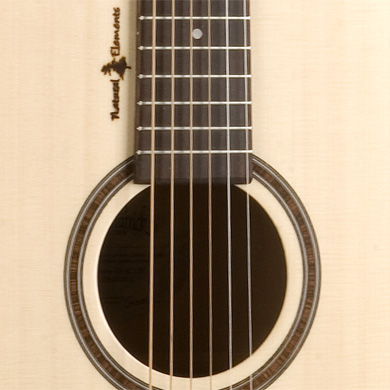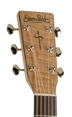 Une guitare claire avec sa table en épicéa, du merisier et un manche en érable argenté. Une fileterie sobre mais très efficace.