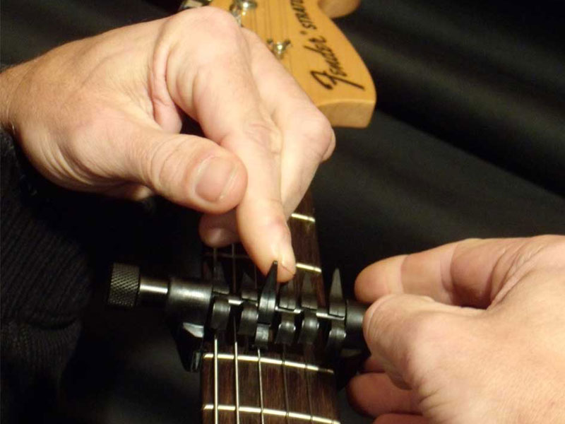 Cet outil apporte la possibilité de perdre ses habitudes sur le manche et de “voir” la guitare avec une oreille nouvelle, la composition sans à priori est alors possible.