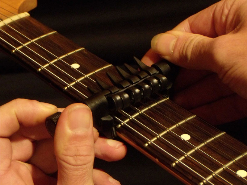 Sur une guitare déjà accordée en open, des doigtés nouveaux et irréalisables avant sont maintenant accessibles. Couplé à un capo “standard” on imagine encore d’autres contrées à découvrir. De nouvelles compositions irréalisables sans ce capo s'offrent à vous maintenant.