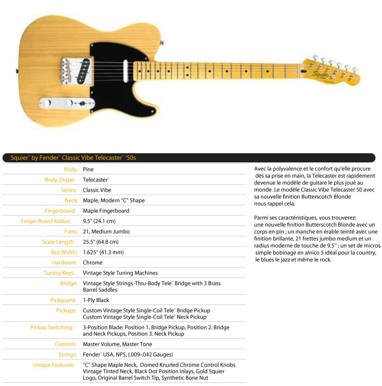 PRéSENTATIONS - GUITARES - SQUIER CLASSIC VIBE TELECASTER 50S