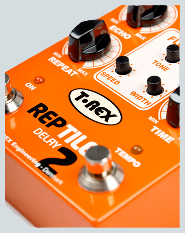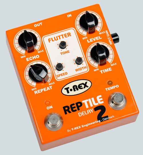 Courant 2008, T-Rex Engineering sortait sa seconde pédale de delay - Reptile, à un tarif nettement plus abordable que celui de sa Replica renommée mondialement. L’idée était de concevoir un delay vintage (abordable), allant même jusqu'à recréer le flutter - à l’origine une défaillance technique des premiers écho à bande… Et le résultat était excellent !