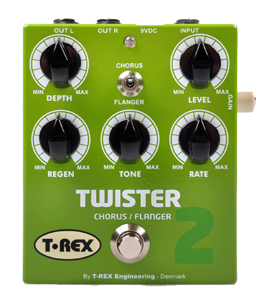Auparavant, sur la Twister, en plus des contrôles habituels de volume (level), de tonalité (Tone) – faisant office de coupe haut, de profondeur et de vitesse (Depth & Rate) et de Regen pour le flanger, on trouvait un premier bouton poussoir pour alterner entre les modes Flanger et Chorus, ainsi qu'un second switch permettant de choisir entre un rendu léger et vintage (Light) ou plus moderne (Heavy) - (pour plus de détails, voir le test ci-dessous).