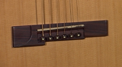 Pour être plus sérieux, quand j'ai essayé pour la première fois ce modèle dans les locaux de chez Gewa en Allemagne, j'ai été très surpris de la profondeur des basses compte tenu de l'alliance des essences utilisées (cèdre et acajou). Des basses profondes sont loin d'être la caractéristique première de l'acajou. Je me suis dit alors que le chevalet avait peut être (je dis bien peut être) quelque chose à voir avec cela.