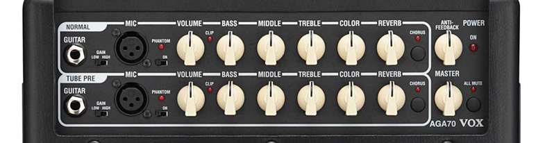 L'ampli dispose d'un canal normal et d'un canal avec préamplification à lampe, une 12AU7.
