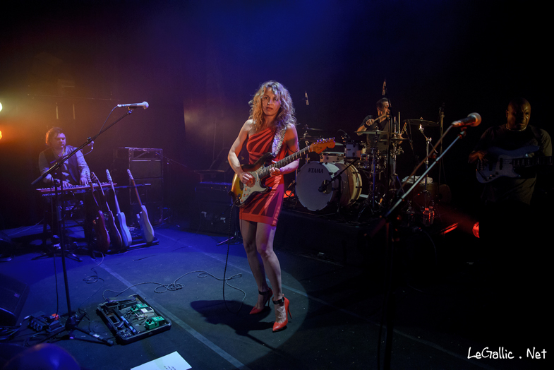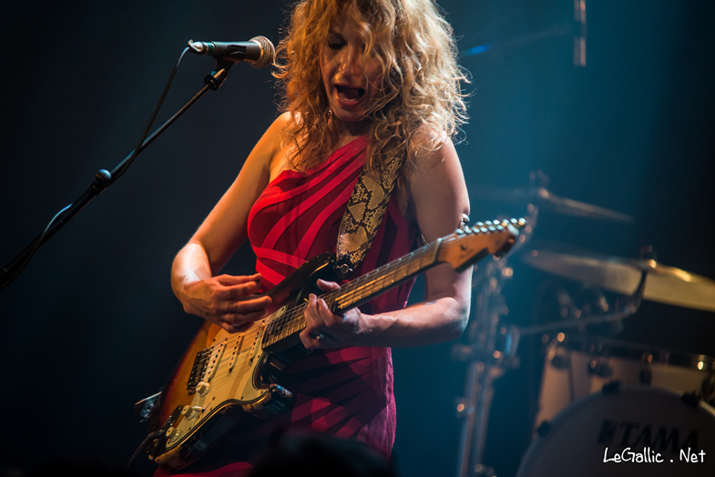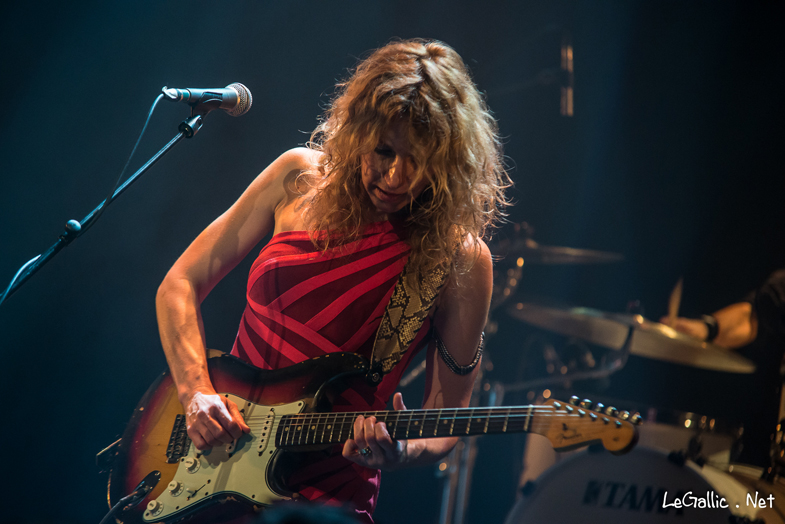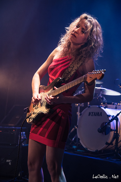 Question matériel, point de débauche d'effet et de pedalboard surchargé, pédale wah > Tube Screamer > Tête Mesa Boogie Mark IV, et elle change plusieurs fois de guitare, mais c'est strat, strat, strat ! (J'ai cru voir sur les réseau sociaux qu'il y a plus ou moins des petits changements en vue à ce niveau et qu'elle parle de faire rentrer au moins un modèle gibson dans son set de guitares)