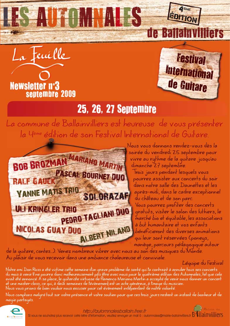 GUITARISTES - FESTIVAL BALLAINVILLIERS NOUVELLE PROGRAMMATION