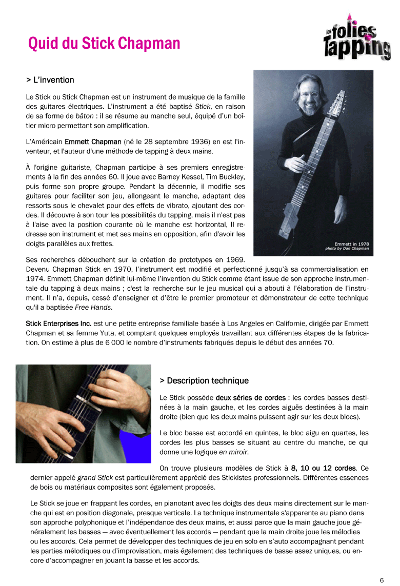PORTRAIT - Le Tapping - Stick Chapman et Tapping - http://www.folies-tapping.com/ REDACTEUR : http://www.folies-tapping.com/