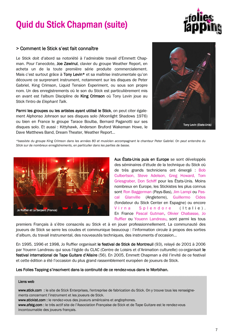 PORTRAIT - Le Tapping - Stick Chapman et Tapping - http://www.folies-tapping.com/ REDACTEUR : http://www.folies-tapping.com/