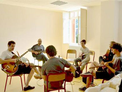 A l'issue de la première matinée, des groupes furent formés afin de constituer de petits ensembles complets et à peu près homogènes. Je me suis donc retrouvé avec d'autres "débutants" (piano, batterie, contrebasse, un autre guitariste et, en plus, un trombone et une chanteuse qui naviguaient sur deux groupes).