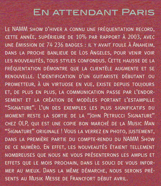 NAMM 2004 confirme des tendances déjà amorcées