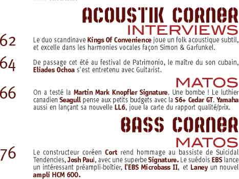 vous présente chaque mois le sommaire de Guitarist/Bass Magazine