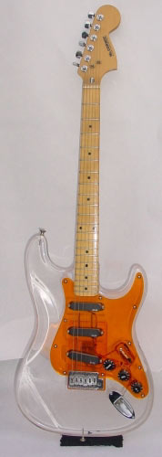 plexiglass, maple neck, 3 emg pickups, made in japan