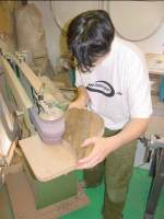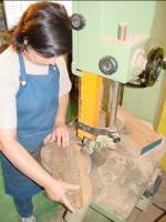 , Grégoire, à la ponceuse à bande, va