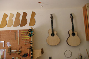 Comme beaucoup de luthiers, Thomas a sa propre forme de guitare :