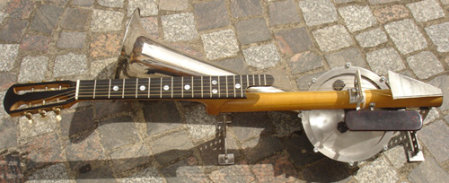 En revisitant et en adaptant le principe de la facture du Strohviol à la guitare et plus particulièrement à la guitare hawaïenne (lap steel guitar), il nous a fallu réinventer un instrument de musique unique ; appartenant aux cordophones et cousin des vents, ne présentant aujourd’hui aucun plan ni schéma de construction.